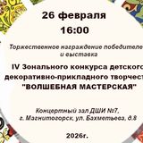26 февраля в 16:00 ч. состоится торжественное награждение победителей и открытие выставки работ IV Зонального конкурса детского декоративно-прикладного творчества "Волшебная мастерская".